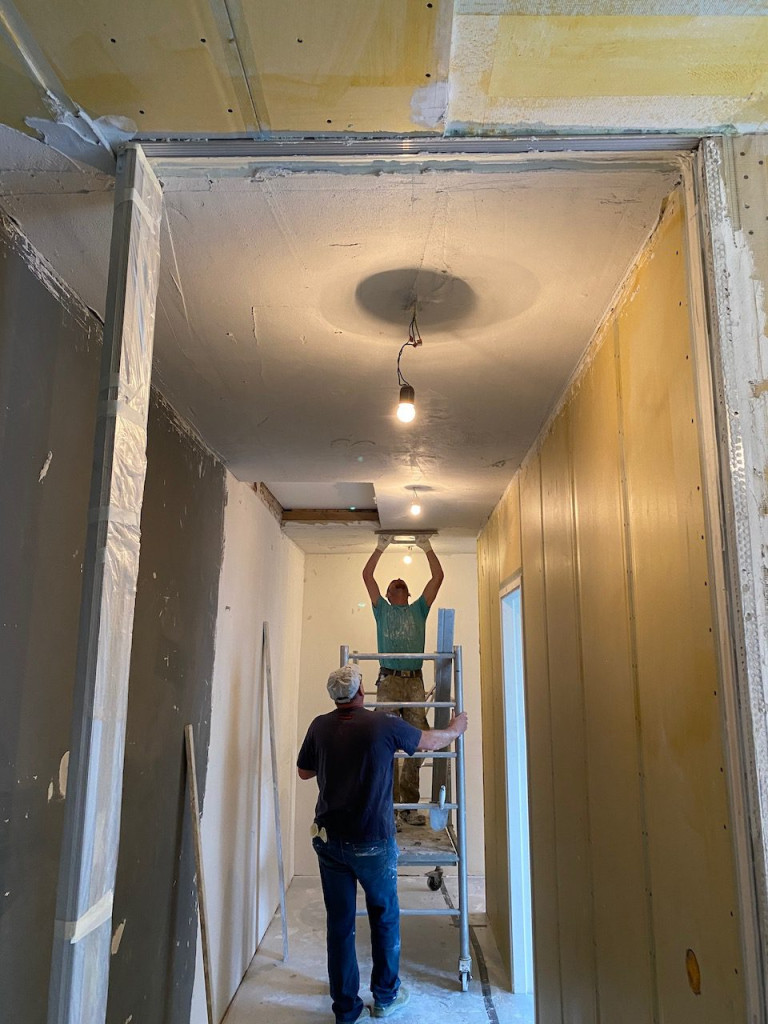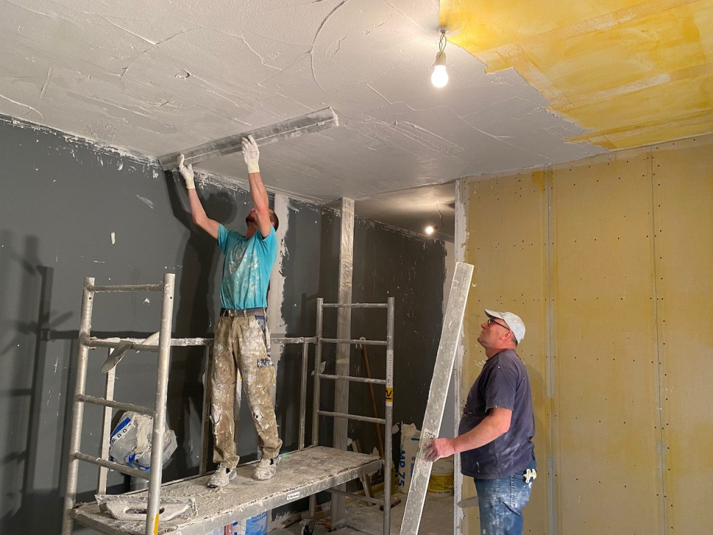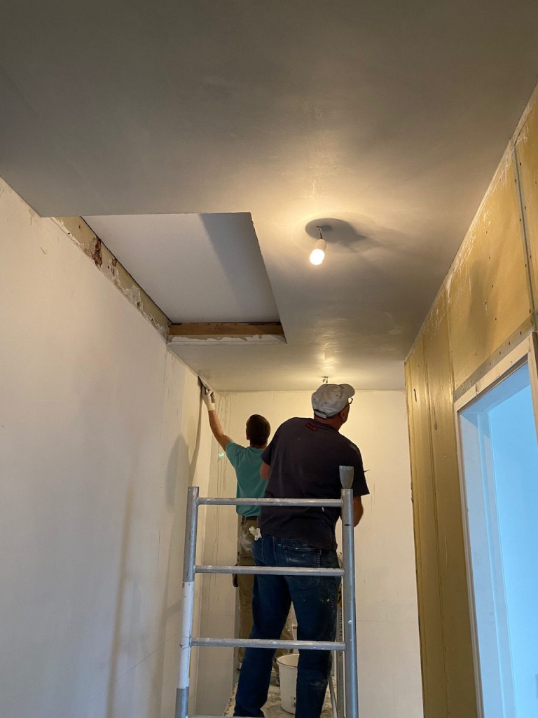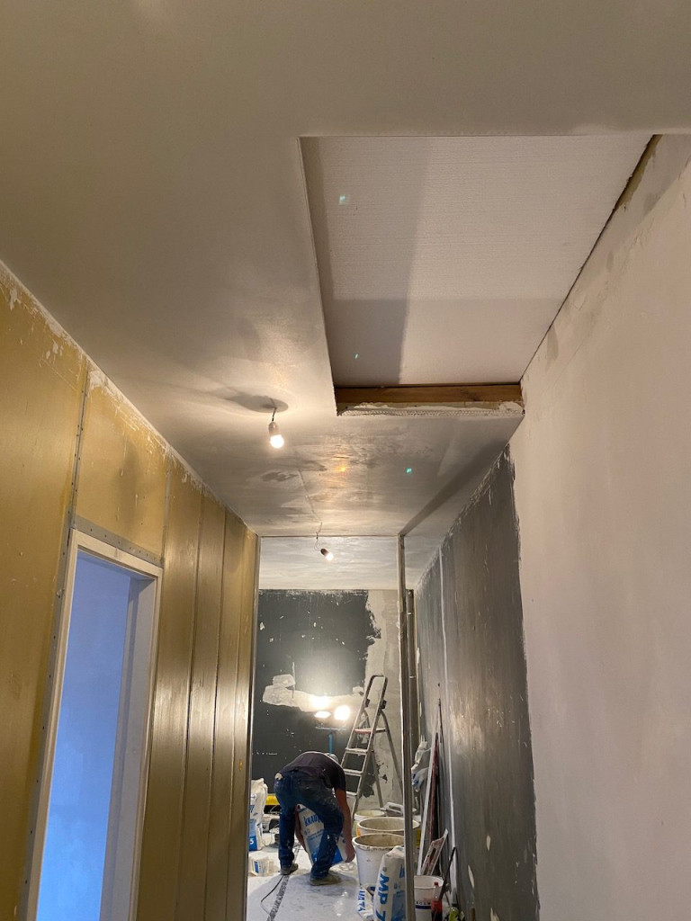 Gisterochtend. Gang plafond in de eerste ruwe laag