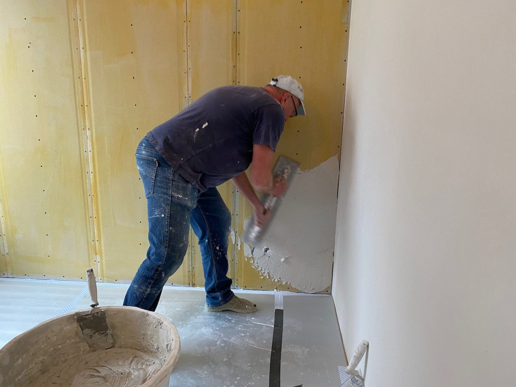 Tenslotte gingen de gipsplaten er tegenaan. Klaar om gestuukt te worden.