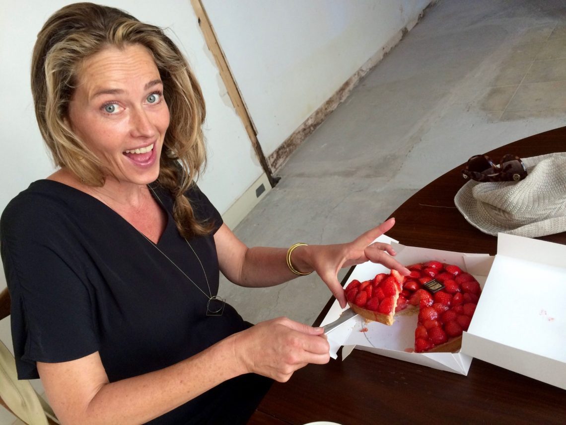 Ik had geen zin om nog eens een berg stof te happen door het laatste stukje plafond in de gang en WC te slopen; vanaf morgen wordt het tropisch warm; en dan kwam ook Annette nog eens op bezoek. Met Aardbeientaart! Een nieuw klusproject zal tot volgende week moeten wachten.